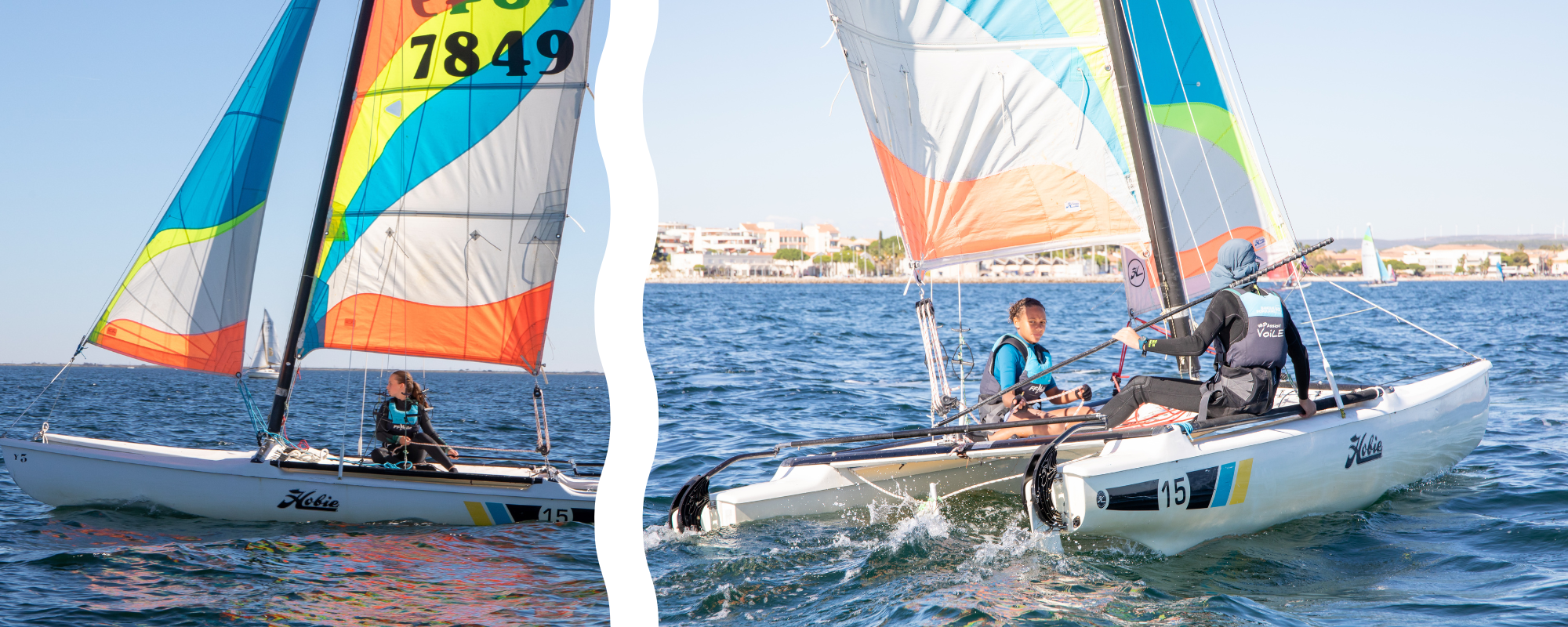 Le Hobie Cat 15 est un bateau réactif et joueur de 15 pieds, qui mélange toujours technique et sensations. Ce catamaran est parfait pour les passionnés de voile, qu’ils soient novices ou aguerris. À la fois léger et rapide, il procure une expérience de navigation exceptionnelle sur l’eau et est équipé de double trapèze.