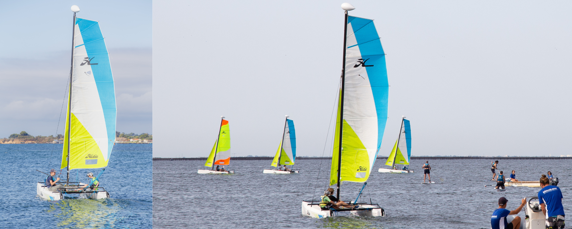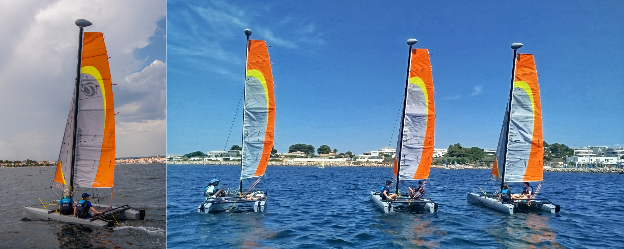 Les catamarans sont des bateaux à voile composés de deux coques. La flotte de catamarans du Yacht Club de Mèze est composée de divers bateaux adaptés à différent public.