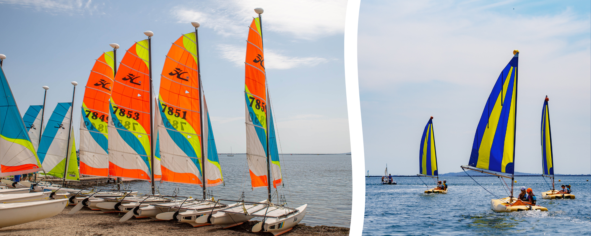 Les navigations peuvent se faire en optimist, funboat, catamaran, fusion, planche à voile ou voilier collectif. Les supports utilisés son adaptés à l’âge et au gabarit de chaque groupe : en savoir plus sur les supports proposés.