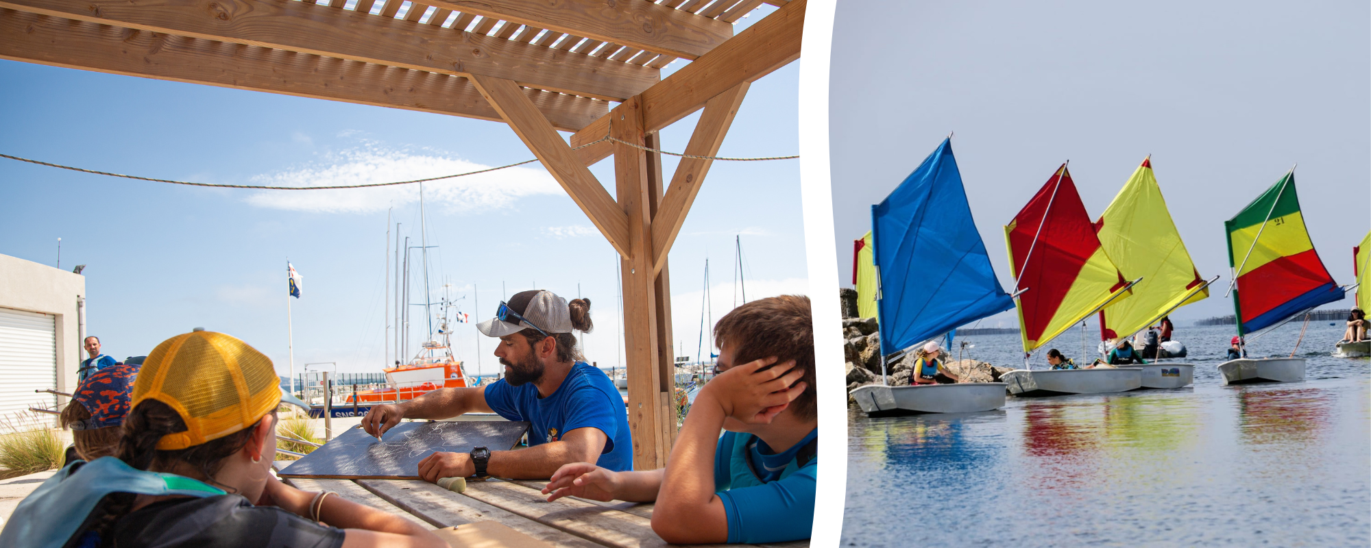 Les navigations sont encadrées par des moniteurs et monitrices diplômé.e.s qui vous enseigneront la voile avec une évolution pédagogique tout au long des séances, ponctuées de séquences d’apprentissage ludiques pour acquérir ses premiers repères.